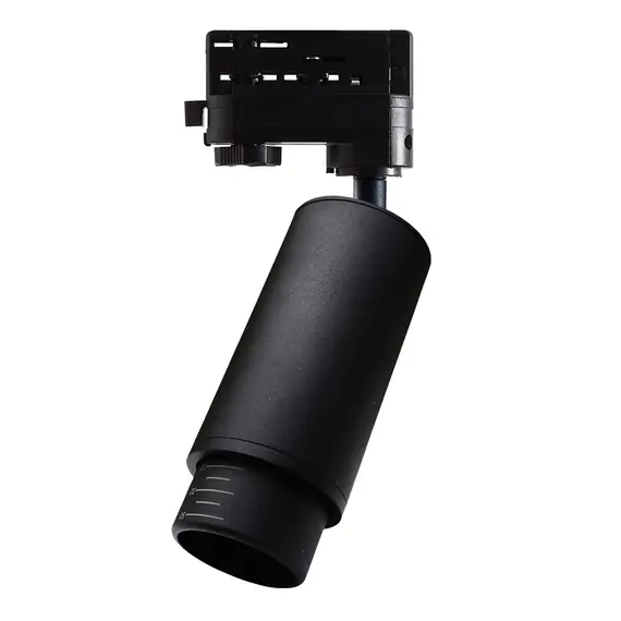 Черен прожектор за 4L шина с възможност за регулиране ъгъла на светене от 15 до 60 градуса.Изключително подходящ прожектор за галерии.